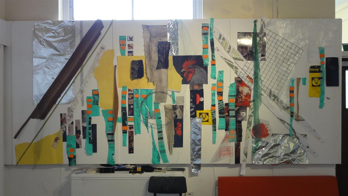 Crit with Lothar provides interesting discussion of role of English landscape in art – his fondness for gardens, which he often uses as a basis for composition of his abstract works. He suggests that my wall collage could provide the ground plan for a garden which indeed it could!